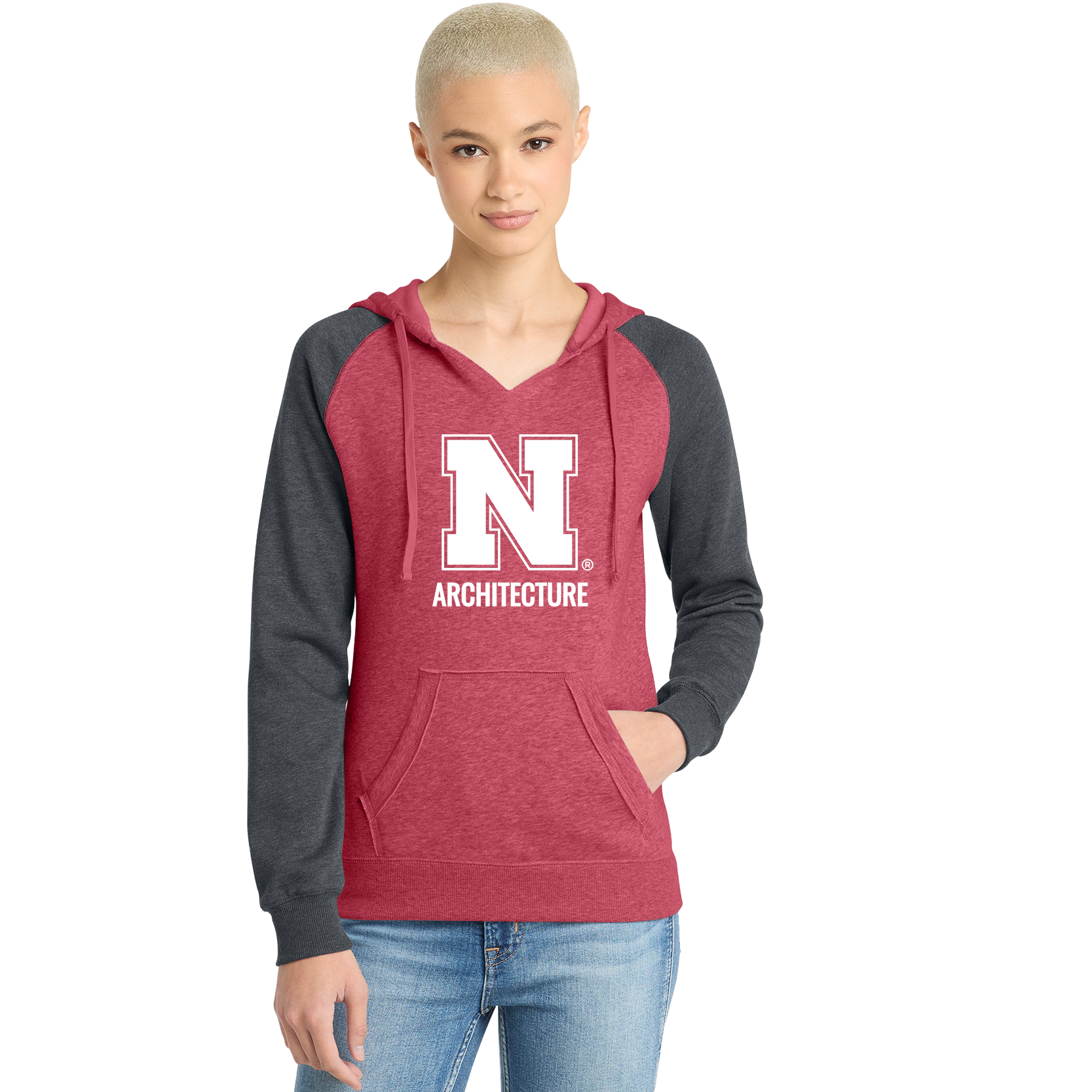 District ® Women’s Lightweight Fleece Raglan Hoodie. A comfortable raglan hoodie with a classic varsity feel. 6.5-ounce, 55/45 combed ring spun cotton/recycled poly fleece. Tear-away label. Coverstitch details. Raw edge details. Split V-neck. Dyed-to-match drawcords. Back neck tape. 2x2 rib knit cuffs and hem.